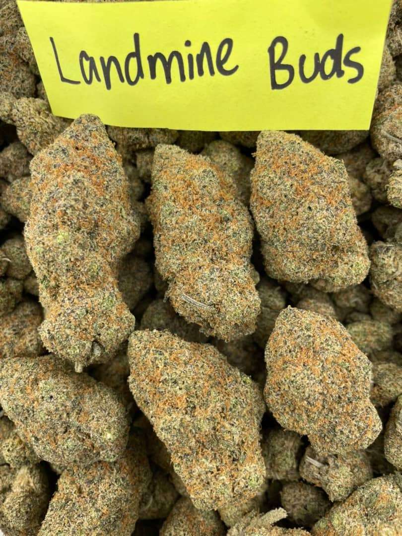 Landmine (often called Land Mine or Landmine Buds in bulk contexts) is a rare, ultra-potent hybrid bred by the renowned Archive Seed Bank. This strain masterfully combines the electric, buzzy sativa energy of a Pacific Northwest (PNW) cut of Dog Shit with the sweet, resin-drenched balance of Do-Si-Dos (Leafly’s 2021 Strain of the Year). The result? An explosive, funky hybrid that’s typically very high in THC and best suited for experienced consumers who love complex, head-turning profiles.